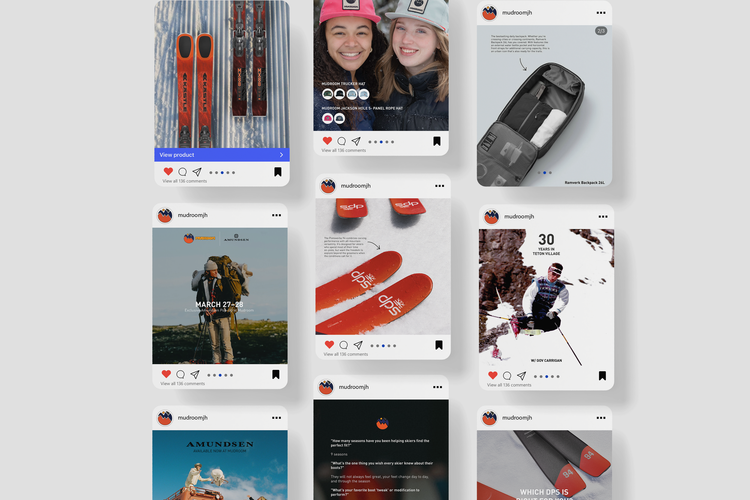 During this semester‑long remote co‑op, I served as Mudroom Jackson Hole’s social media director and lead creative. I was responsible for developing, designing, and curating content across Instagram and Facebook. My work included creating visual assets, writing copy, managing posting schedules, and shaping the brand’s digital voice to increase engagement and strengthen their online presence.
